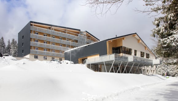 Das Sporthotel Olympia befindet sich im Zentrum des Skigebiets Šumava Zadov-Churáňov, direkt an der Plattform der Langlaufloipen und in der Nähe der Kobyla-Skipiste, fast auf dem Churáňov-Kamm auf einer Höhe von 1080 Metern über dem Meeresspiegel. Das Hotel befindet sich in bestmöglicher Lage im Skigebiet Zadov. Ruhige Lage mit schöner Aussicht und gleichzeitig sehr guter ganzjähriger Erreichbarkeit für Skifahrer, Radfahrer, Wanderer und Wellnessliebhaber.