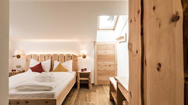 Die 22 Zimmer verteilen sich über drei Etagen und sind über einen Aufzug erreichbar. Die Zimmer sind mit einem Telefon, einem TV-Gerät und WLAN ausgestattet. Einige Zimmer bieten zudem einen Balkon mit Blick auf das Tal und die Berge. Die Badezimmer verfügen über eine Dusche, eine Badewanne, einen Haartrockner und Bademäntel.