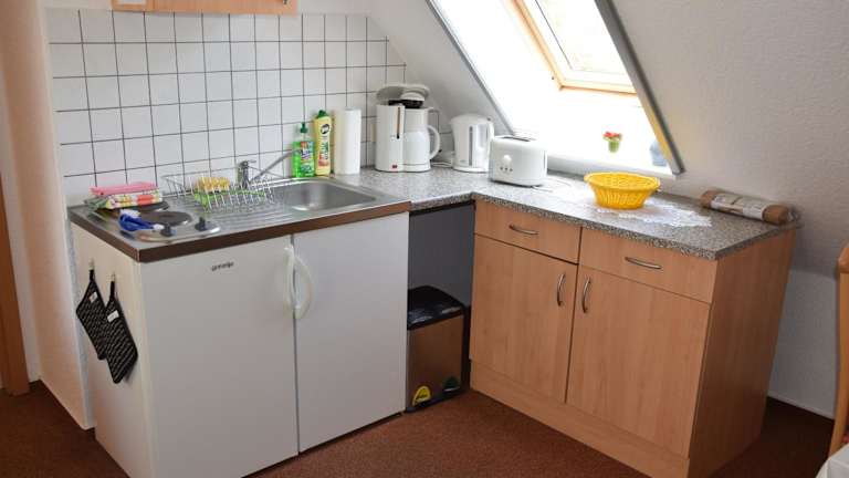 Die Ferienwohnungen verfügen über eine voll ausgestattete Küche mit Kühlschrank, Herdplatte, Toaster, Kaffeemaschine und Wasserkocher. Es sind Essenslieferungen in die Unterkunft möglich, und ein Café ist vor Ort.