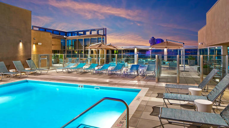 Das SpringHill Suites by Marriott at Anaheim Resort Area/Convention Center ist die ideale Unterkunft für Ihren Aufenthalt in Anaheim, nur 10 Gehminuten vom Disneyland entfernt. Genießen Sie das kostenfreie warme Frühstück und den atemberaubenden Blick auf den Themenpark und das Feuerwerk von der Dachterrasse aus. Die klimatisierten Suiten bieten modernen Komfort mit einem Flachbild-Kabel-TV, einer Mikrowelle und einem kleinen Kühlschrank. Entspannen Sie am Pool auf der Dachterrasse und nutzen Sie das kostenfreie WLAN. Das Hotel bietet außerdem eine 24-Stunden-Rezeption und eine Snackbar. Das Anaheim Convention Center ist nur 5 Gehminuten entfernt und der Flughafen Los Angeles ist in 40 Autominuten zu erreichen.