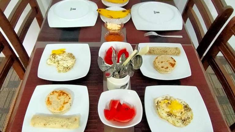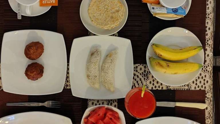 Beginnen Sie Ihren Tag im SRI Home mit einem köstlichen kontinentalen Frühstück, das Ihnen in der Unterkunft serviert wird. Genießen Sie eine Auswahl an leckeren Speisen und Getränken und starten Sie gestärkt in den Tag.
