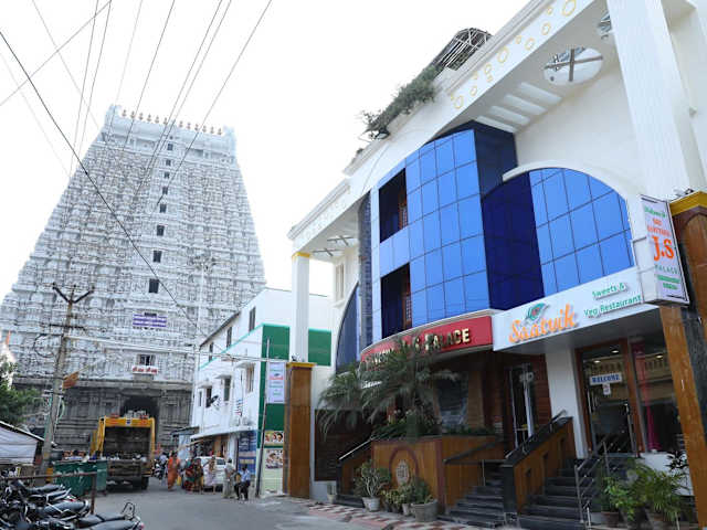 Das Hotel Sri Sarvesha JS Palace temple view in Tiruvannamalai bietet eine ideale Lage für Gäste, die den Tempel besuchen möchten. Die Unterkunft ist schön dekoriert und verfügt über klimatisierte Zimmer mit kostenfreiem WLAN und Kabel-TV. Der Garten und die Terrasse laden zum Entspannen ein und verschiedene Serviceleistungen stehen gegen Aufpreis zur Verfügung. Kostenlose Parkplätze sind ebenfalls vorhanden. Das hoteleigene Restaurant Abirami verwöhnt die Gäste mit indischer und chinesischer Küche.