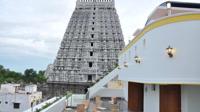 Das Hotel Sri Sarvesha JS Palace temple view liegt nur 50 m vom beliebten Tempel in Tiruvannamalai entfernt. Gäste können die Nähe zum Tempel nutzen, um ihn bequem zu besuchen. In der Umgebung befinden sich auch der berühmte Tempel Aadhi Thiruvarangam und der Staudamm Sathanur, die beide ca. 35 km entfernt sind. Der Bahnhof und der Busbahnhof von Tiruvannamalai sind nur 1 km entfernt. Der internationale Flughafen Chennai ist in 160 km Entfernung zu erreichen.