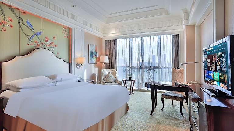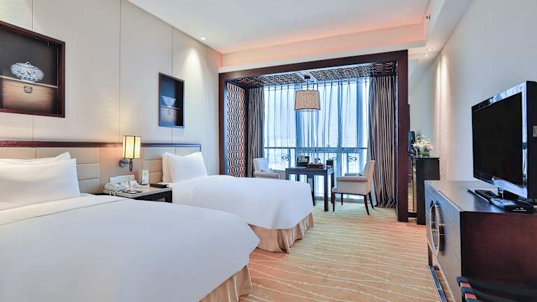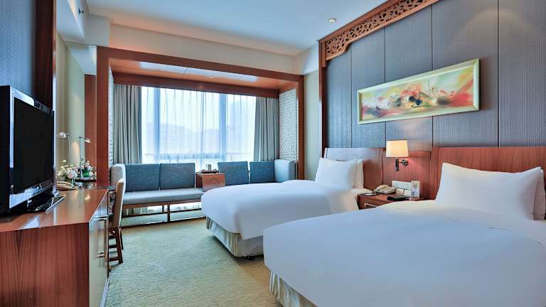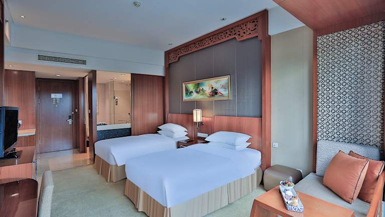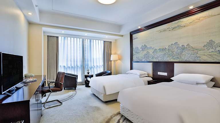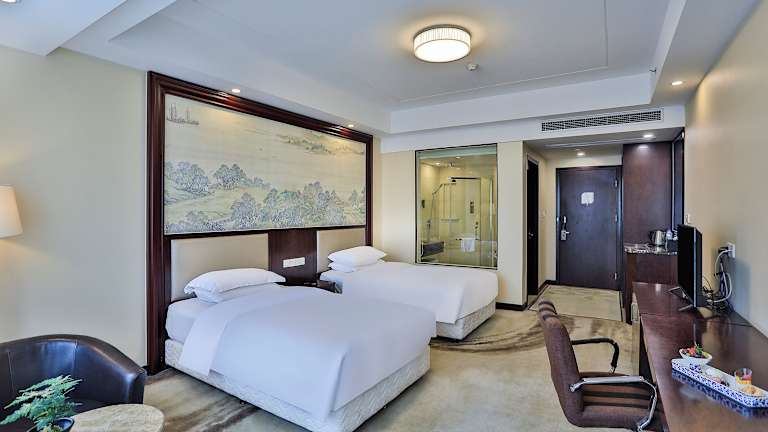 Die Zimmer im Hotel sind mit Teppichboden ausgelegt und modern eingerichtet. Jedes Zimmer verfügt über eine Klimaanlage, ein eigenes Bad mit Hausschuhen und einem Bademantel sowie einem Haartrockner. Zu den weiteren Annehmlichkeiten zählen ein Kühlschrank, eine Kaffeemaschine, eine Minibar, ein Telefon, ein Bügeleisen/-brett und ein Safe. Jedes Zimmer ist zudem mit einem Wecker und einem Schreibtisch ausgestattet.