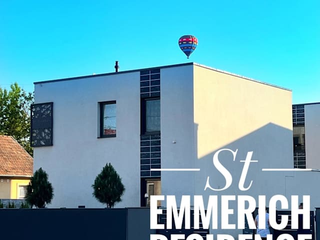 Die St Emmerich Residence in Győr bietet komfortable Unterkünfte in einer ruhigen Umgebung, nur wenige Kilometer vom Stadtzentrum entfernt. Die Villa verfügt über eine Terrasse mit Blick auf den Garten, eine voll ausgestattete Küche und kostenfreies WLAN. Parkplätze stehen ebenfalls kostenfrei zur Verfügung. In der Umgebung gibt es zahlreiche Aktivitäten wie Tischtennis und Radfahren. Die Basilika von Győr und das Schloss Amade sind ebenfalls leicht erreichbar.