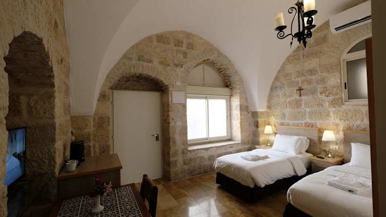 Das St. George's Cathedral Pilgrim Guesthouse in Jerusalem bietet seinen Gästen eine traditionelle und gastfreundliche Unterkunft in einem historischen Steingebäude. Mit komfortablen Zimmern, kostenfreiem WLAN und einer Vielzahl von Annehmlichkeiten wie einem Restaurant, einer Terrasse und einer Bar ist dieses Gästehaus der ideale Ort, um Jerusalem zu erkunden. Die Lage in der Nähe der Altstadt und des Felsendoms ermöglicht es den Gästen, die faszinierende Geschichte und Kultur der Stadt hautnah zu erleben.