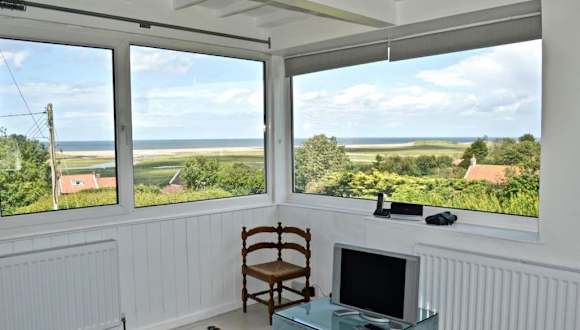 Die Unterkunft befindet sich in Salthouse mit Blick auf das Meer. Die Umgebung bietet zahlreiche Attraktionen wie Blakeney Point in 9,4 km Entfernung, Cromer Pier in 21 km, und Blickling Hall in 24 km. Houghton Hall ist 41 km entfernt, während der Themenpark BeWILDerwood 42 km entfernt ist. Der nächstgelegene Flughafen ist der Flughafen Norwich, der 42 km entfernt ist.