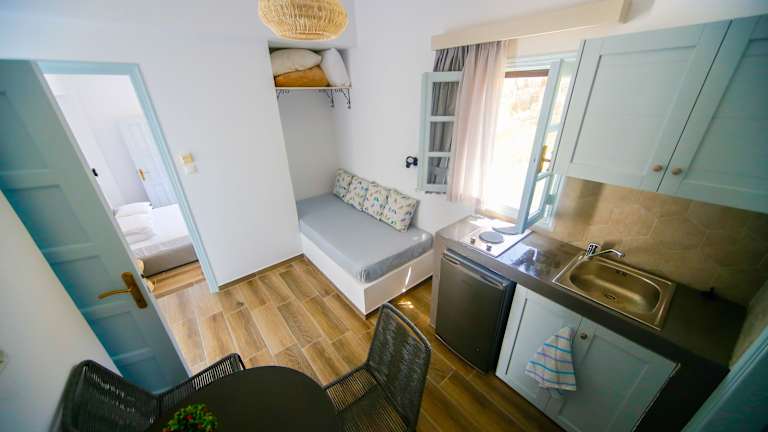 Die Zimmer sind klimatisiert, mit einem Balkon ausgestattet und bieten in der Kochnische einen Kühlschrank, einen Herd und einen Backofen. Zur Unterhaltung stehen ein TV-Gerät und WLAN ohne Gebühr zur Verfügung. Die Badezimmer sind mit einer Dusche und einer Badewanne ausgestattet. Es werden Familien- und Nichtraucherzimmer angeboten.