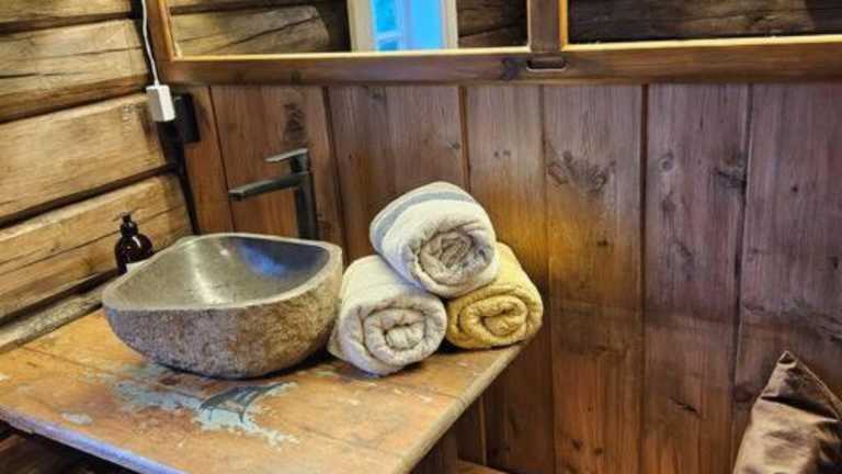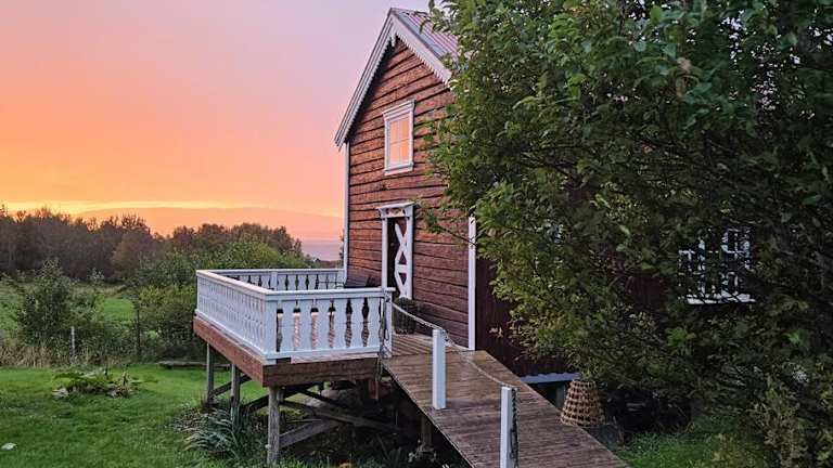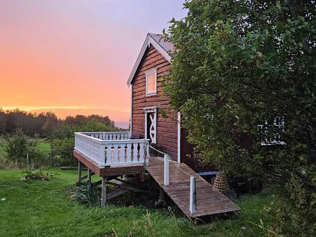 Stabburet på Balsnes Gård verfügt über eine Veranda und einen Garten, in dem Gäste entspannen können. Zusätzliche Annehmlichkeiten sind ein kostenloser Privatparkplatz sowie eine Terrasse mit Meerblick.