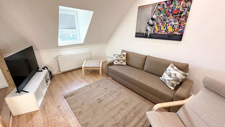 Die Ferienwohnung besteht aus 2 Schlafzimmern, einer Küche, die mit einem Kühlschrank und einem Geschirrspüler ausgestattet ist, sowie einem Flachbild-TV und einem Sitzbereich. Ein Badezimmer mit Dusche ist ebenfalls vorhanden. Handtücher und Bettwäsche werden bereitgestellt.