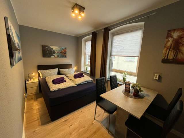Die Ferienwohnung ist mit einem Schlafzimmer, einem Wohnzimmer, einer voll ausgestatteten Küche, einem Kühlschrank und einer Kaffeemaschine ausgestattet. Das Badezimmer verfügt über eine Dusche und einen Haartrockner. Schallisolierte Zimmer sind vorhanden.
