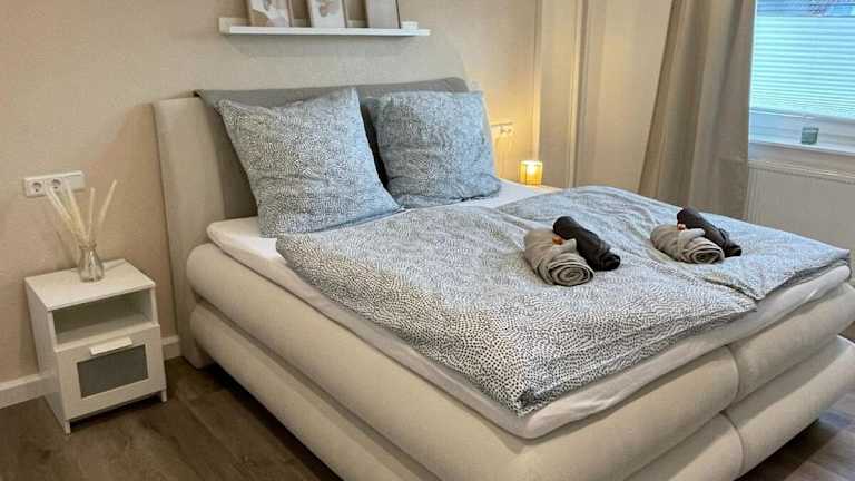 Die Ferienwohnung verfügt über 2 Schlafzimmer, ein Wohnzimmer, eine voll ausgestattete Küche mit Kühlschrank und Kaffeemaschine sowie ein Badezimmer mit Dusche und kostenlosen Pflegeprodukten. Handtücher und Bettwäsche werden bereitgestellt.