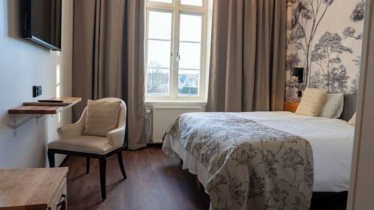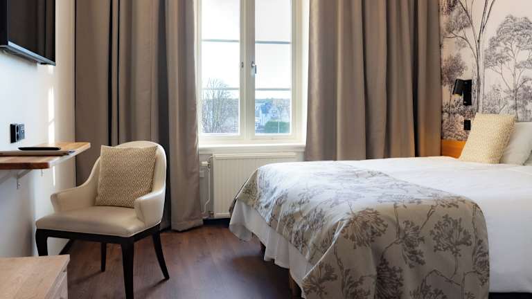 Das Hotel Mariestads Stadshotell bietet moderne Zimmer mit Holzböden und frischer Möblierung. Jedes Zimmer verfügt über ein eigenes Bad mit Dusche und Haartrockner. Zur Ausstattung gehört auch ein Flachbild-TV, damit die Gäste ihre Lieblingssendungen nicht verpassen. Das kostenfreie WLAN ermöglicht es den Gästen, mit Freunden und Familie in Kontakt zu bleiben oder im Internet zu surfen.