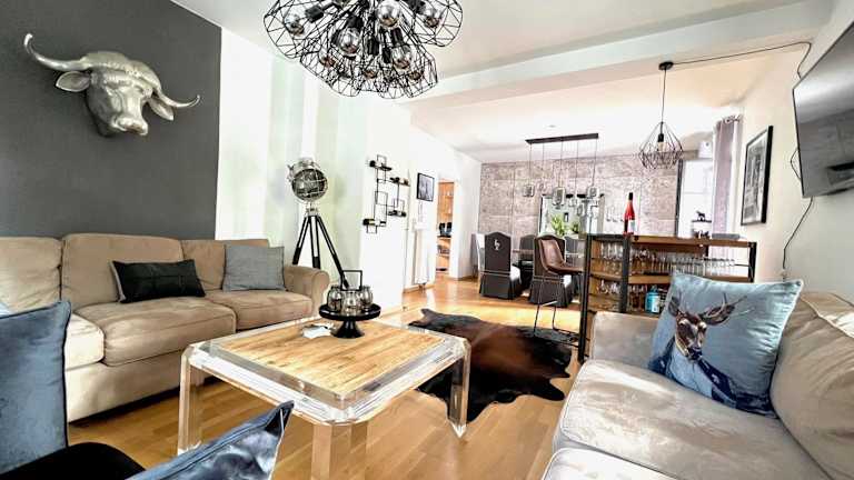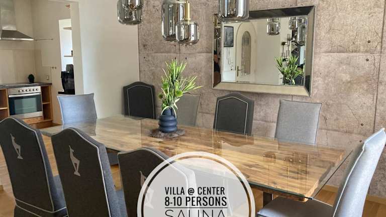 Die STADTVILLA BELLE KITZ bietet 5 komfortable Schlafzimmer und 2 Badezimmer, die Platz für eine große Gruppe von Gästen bieten. Die Zimmer sind mit hochwertiger Bettwäsche und Handtüchern ausgestattet. Ein Flachbild-TV und ein Essbereich sorgen für Unterhaltung und Komfort. Die voll ausgestattete Küche ermöglicht es den Gästen, ihre eigenen Mahlzeiten zuzubereiten. Die Terrasse bietet einen herrlichen Blick auf die umliegenden Berge.