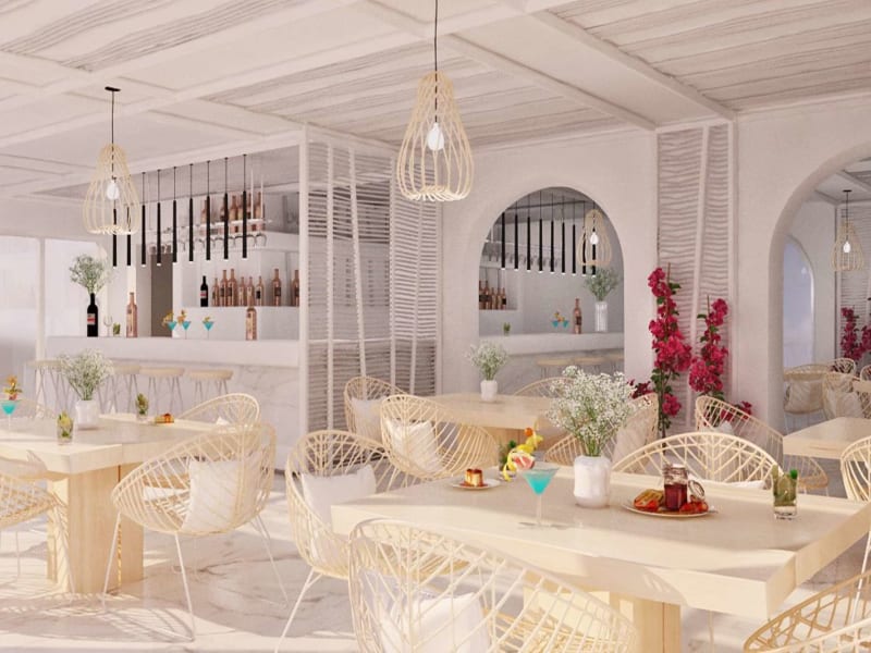 Das Hotel bietet All-Inclusive-Verpflegung mit einem Buffetrestaurant, das griechisch-mediterrane Küche serviert. Das Frühstück wird von 07:00 bis 10:30 Uhr serviert, das Mittagessen von 13:00 bis 14:30 Uhr und das Abendessen von 19:00 bis 21:30 Uhr. Zusätzlich gibt es Kaffee und Kuchen/Gebäck von 16:00 bis 17:00 Uhr, Snacks von 23:00 bis 13:00 Uhr und von 15:00 bis 17:00 Uhr sowie Eis von 17:00 bis 18:00 Uhr. Ausgewählte lokale alkoholische und nichtalkoholische Getränke sind von 10:30 bis 01:00 Uhr erhältlich.
