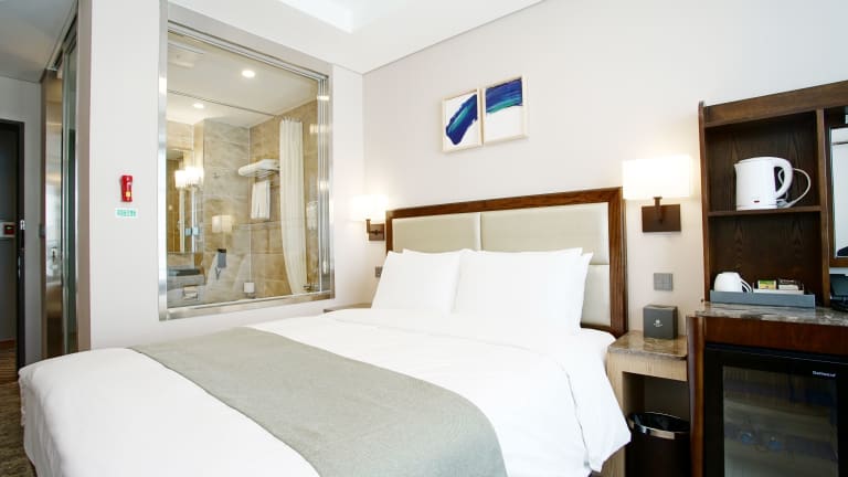 Die Zimmer im 스탠포드 호텔 부산 bieten einen herrlichen Blick auf das Meer oder die Stadt und sind mit modernen Annehmlichkeiten ausgestattet. Jedes Zimmer verfügt über einen Flachbild-TV, einen Safe, einen Schreibtisch und einen Kühlschrank. Das eigene Badezimmer ist mit einem Bademantel, kostenlosen Pflegeprodukten, Hausschuhen und einem WC mit einem elektronischen Bidet ausgestattet. Der Komfort und die Annehmlichkeiten der Zimmer sorgen für einen angenehmen Aufenthalt.