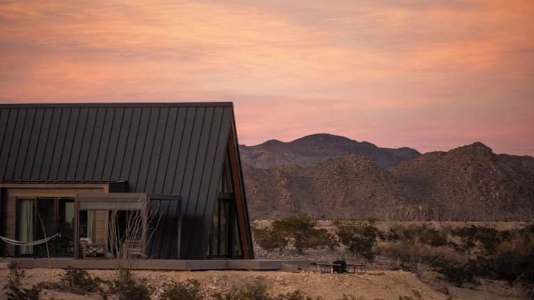 Die Unterkunft befindet sich in Terlingua, Texas, und bietet eine malerische Aussicht auf die umliegenden Berge.