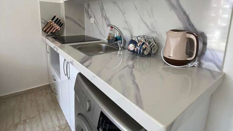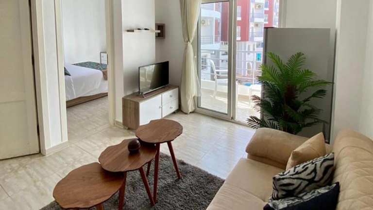 Die klimatisierte Ferienwohnung besteht aus einem Schlafzimmer, einem Wohnzimmer und einer voll ausgestatteten Küche mit Kühlschrank und Kaffeemaschine. Zur weiteren Ausstattung gehören zwei Badezimmer mit Dusche und kostenlosen Pflegeprodukten. Handtücher und Bettwäsche werden bereitgestellt.