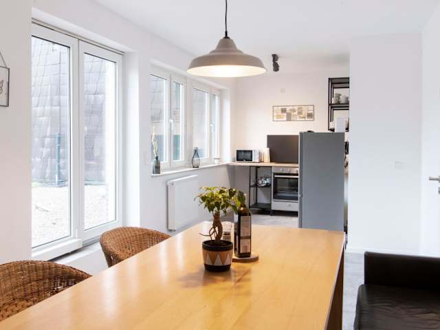 Das Stay and Work Apartment - 6 single beds in Bocholt bietet seinen Gästen eine komfortable Unterkunft mit moderner Ausstattung. Freuen Sie sich auf eine gemütliche Gemeinschaftslounge, eine Terrasse mit Blick auf die Stadt und kostenloses WLAN in allen Bereichen. Das Apartment verfügt über zwei Schlafzimmer, eine voll ausgestattete Küche mit Kühlschrank und Backofen, einen Flachbild-TV und einen geräumigen Sitzbereich. Handtücher und Bettwäsche werden gestellt, um Ihnen einen angenehmen Aufenthalt zu ermöglichen. Die Umgebung bietet viele Möglichkeiten zum Radfahren und Erkunden. Der nächstgelegene Flughafen Weeze ist nur 49 km entfernt.