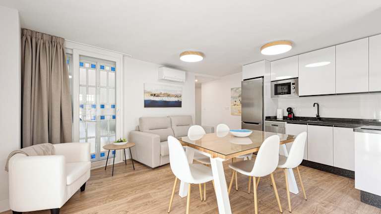 Die Ferienwohnung verfügt über zwei Schlafzimmer, ein Wohnzimmer und eine voll ausgestattete Küche mit Kühlschrank und Kaffeemaschine. Das Badezimmer ist mit einer Dusche und einem Haartrockner ausgestattet. Zur Ausstattung gehören zudem Klimaanlage, TV und Heizung.