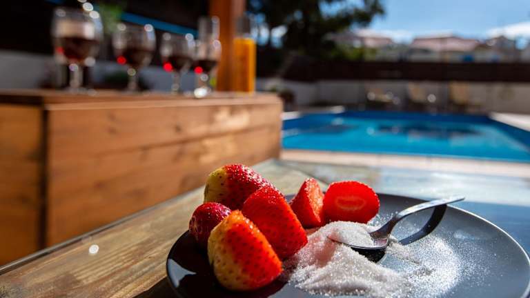 Die Villa verfügt über eine voll ausgestattete Küche, die mit einem Kühlschrank und einer Kaffeemaschine ausgestattet ist. Es liegen keine Informationen zu weiteren Verpflegungsmöglichkeiten vor.