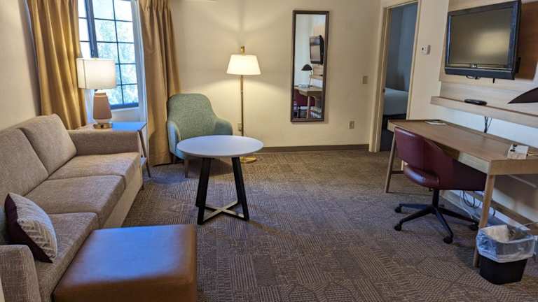 Das Hotel verfügt über 108 Zimmer auf 4 Etagen, die über einen Aufzug erreichbar sind. Die Zimmer sind komfortabel und mit einer voll ausgestatteten Küche ausgestattet, um den Gästen ein Zuhause fernab von Zuhause zu bieten. Zu den Annehmlichkeiten gehören auch ein Kamin, ein TV-Raum und eine Bibliothek. Das Hotel bietet außerdem einen kostenlosen Shuttleservice zum internationalen Flughafen Lehigh Valley.