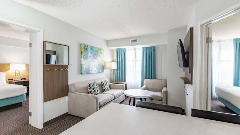 Alle Zimmer sind mit Klimaanlage und Heizung ausgestattet und bieten eine voll ausgestattete Küche, einen Sitzbereich, einen 42-Zoll-LED-TV, Safe, Minibar, Schreibtisch sowie eine Mikrowelle, Tee-/Kaffeemaschine und Kühlschrank. Badezimmer verfügen über Dusche und Haartrockner. Einige Zimmer bieten einen Whirlpool. Rollstuhlgerechte Zimmer sind ebenfalls vorhanden.