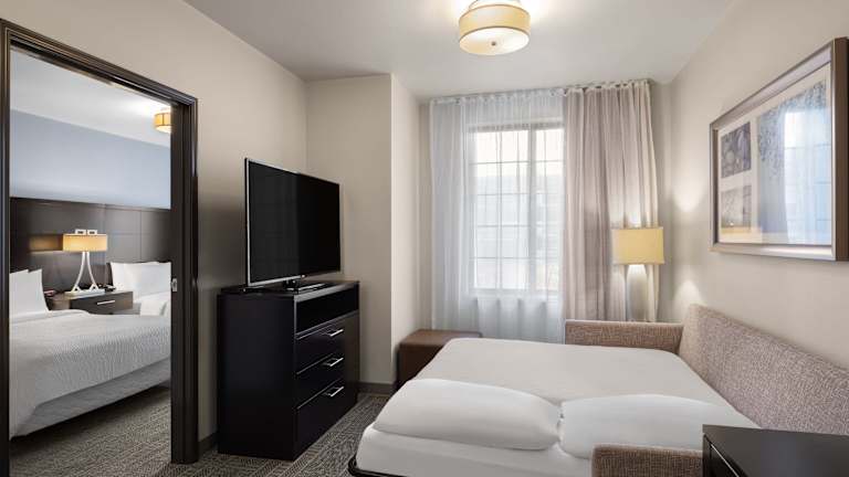 Die Zimmer des Staybridge Suites Midvale verfügen über Klimaanlage, Heizung, Doppelbett und Sofabett. Diverse Annehmlichkeiten wie ein Safe, Schreibtisch, Kühlschrank, Mikrowelle und Geschirrspüler sind vorhanden. Für zusätzlichen Komfort stehen ein Bügelset, ein Telefon, Sat-TV, ein DVD-Player und kostensloses WLAN bereit. Alle Badezimmer sind mit Dusche und Badewanne sowie Haartrockner ausgestattet, und es sind spezielle rollstuhlgerechte Zimmer verfügbar.
