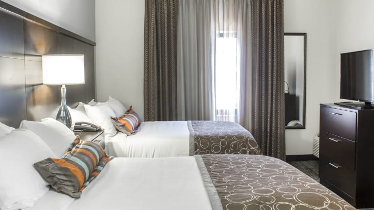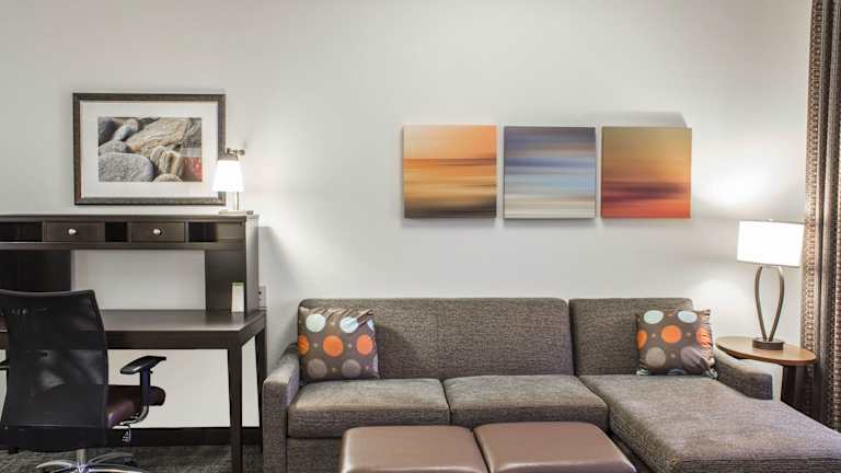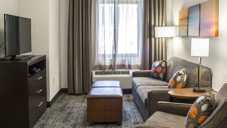 Die Zimmer im Staybridge Suites North Jacksonville sind komfortabel und gemütlich eingerichtet. Jedes Zimmer verfügt über eine voll ausgestattete Küche mit Backofen, Herd, Mikrowelle, Kühlschrank und Kaffeemaschine. Ein Flachbild-Kabel-TV mit DVD-Player sorgt für Unterhaltung. Das Hotel bietet auch Annehmlichkeiten wie kostenfreies WLAN und Wäschemöglichkeiten für den Komfort der Gäste.