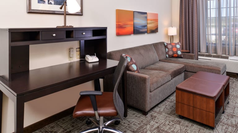Die Suiten im Staybridge Suites O'Fallon Chesterfield sind geräumig und bieten eine voll ausgestattete Küchenzeile, in der Sie Ihre eigenen Mahlzeiten zubereiten können. Die modernen Suiten verfügen über ein Wohnzimmer mit einem Schlafsofa, einen DVD-/CD-Player und kostenfreies WLAN. Ein Schreibtisch und ein Videorekorder sind ebenfalls vorhanden.