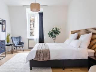 Die Ferienwohnung besteht aus einem Schlafzimmer, einem Wohnzimmer, einer voll ausgestatteten Küchenzeile mit Kühlschrank und Kaffeemaschine sowie einem Badezimmer mit Dusche und Haartrockner. Handtücher und Bettwäsche werden bereitgestellt.