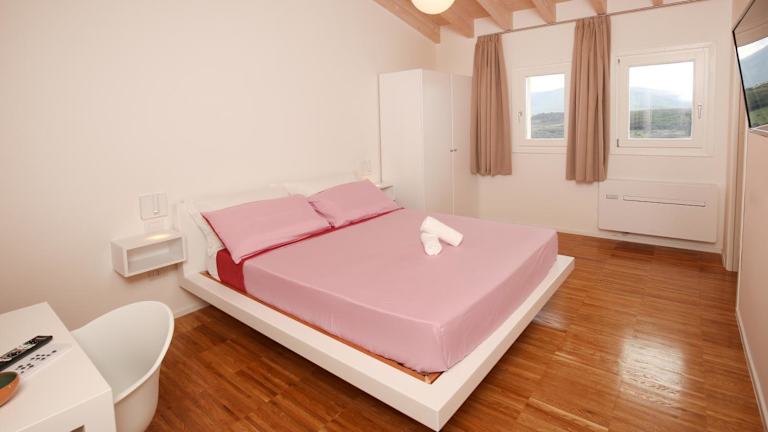 Die Zimmer sind mit Klimaanlage ausgestattet und verfügen über einen Schreibtisch sowie einen Balkon mit Blick auf die Berge. Jedes Zimmer beinhaltet ein eigenes Badezimmer, einen Flachbild-TV, Bettwäsche, Handtücher und einen Kühlschrank.