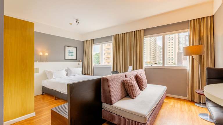 Das VACANZA - AL RIO NEGR0 - Alphaville bietet seinen Gästen eine komfortable Unterkunft mit vielen Annehmlichkeiten. Das Hotel verfügt über ein Restaurant, einen Garten, eine Gemeinschaftslounge und eine Bar. Die Zimmer sind modern eingerichtet und mit Klimaanlage, Flachbild-TV und eigenem Bad ausgestattet. Einige Zimmer verfügen über eine Küchenzeile. Das Hotel bietet auch eine Sauna und ein Thermalbad. Ein kontinentales Frühstück wird jeden Morgen serviert. Die Lage des Hotels ist günstig, da es nur 23 km vom Allianz Parque und 24 km vom Stadion Morumbi - Cicero Pompeu de Toledo entfernt liegt. Der nächstgelegene Flughafen ist der Flughafen São Paulo-Congonhas, der 30 km entfernt ist.