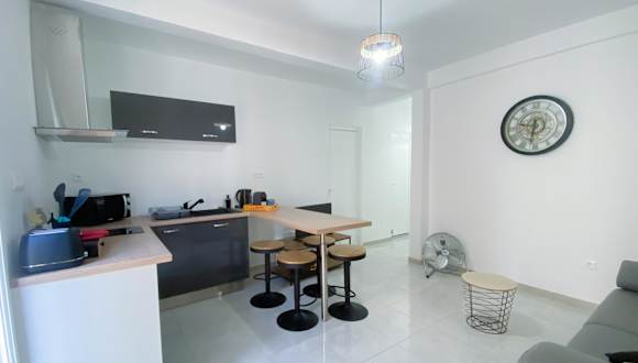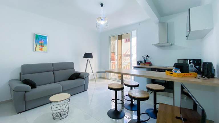 Die Ferienwohnung STE LUCE 50M DE LA MER APPT STANDING T2 3/4 PERS KAZ'ANTILLAISE ist eine moderne Unterkunft direkt am Strand mit Annehmlichkeiten wie kostenlosem WLAN, einer Terrasse und Klimaanlage. Sie bietet direkten Zugang zu einem Balkon.