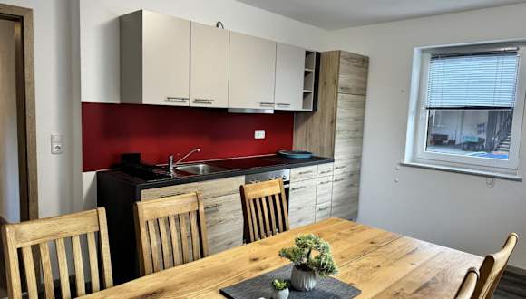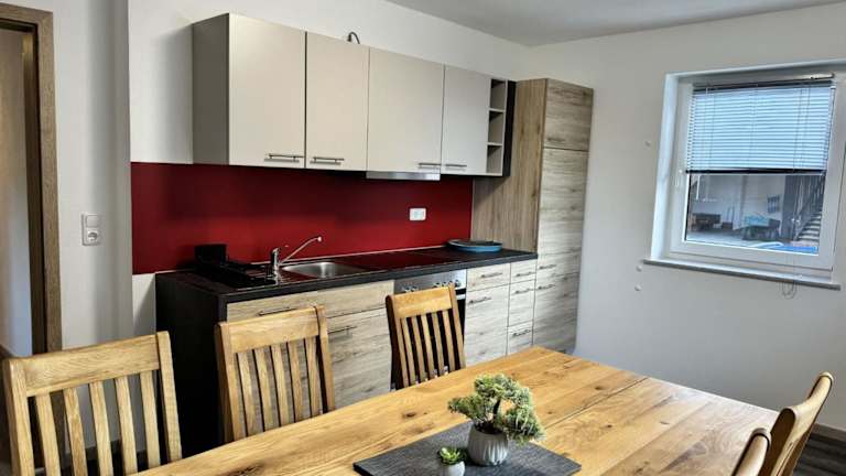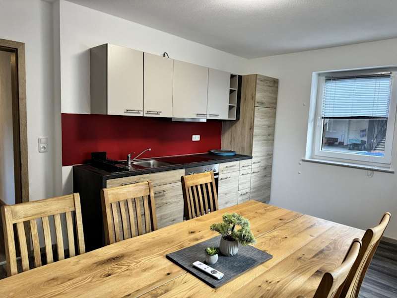 Die Wohneinheiten verfügen über einen Sitzbereich und eine voll ausgestattete Küche, die diverse Kochmöglichkeiten wie Kühlschrank, Ofen und Herdplatte umfasst.