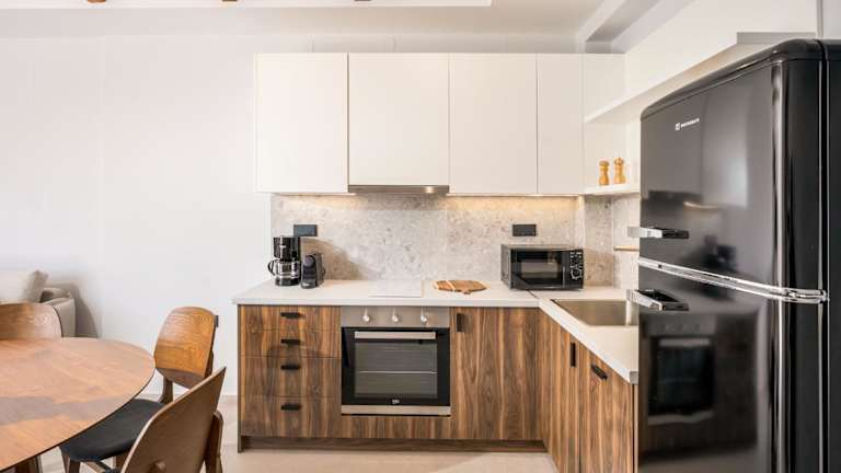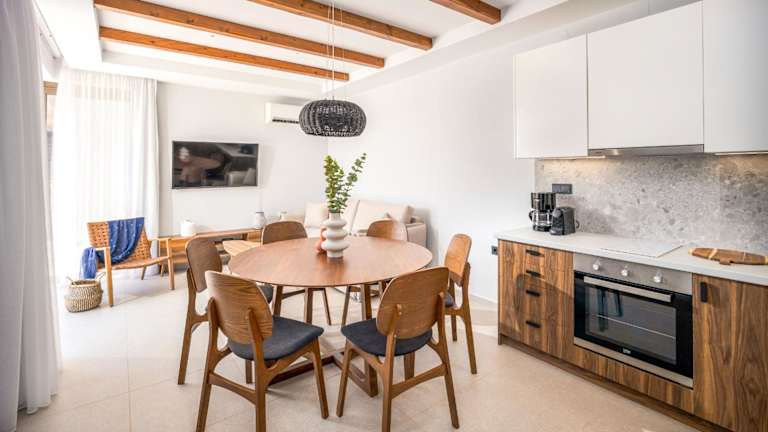 Die Wohneinheiten sind mit einem Sitzbereich, einem Satelliten-Flachbild-TV und einer voll ausgestatteten Küche ausgestattet. Diese Küche enthält einen Kühlschrank, einen Geschirrspüler, einen Ofen, eine Mikrowelle, eine Herdplatte, eine Kaffeemaschine und einen Wasserkocher. Ein eigenes Badezimmer mit Dusche und kostenlosen Pflegeprodukten ist ebenfalls vorhanden.