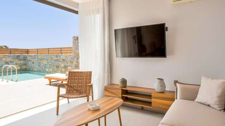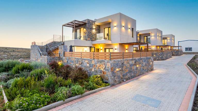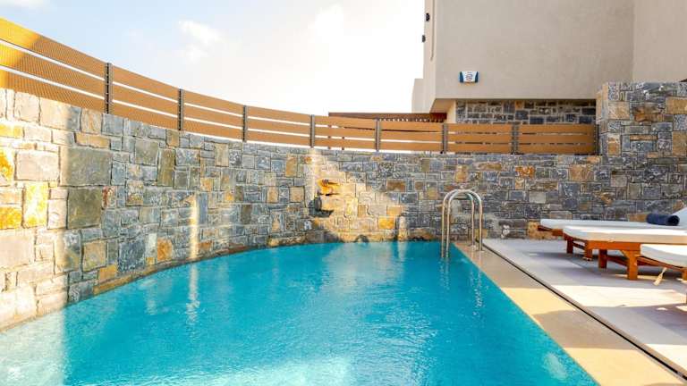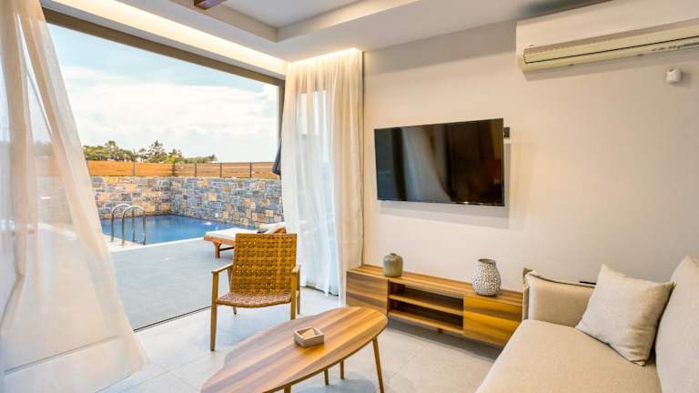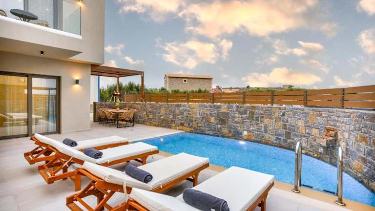 Stefi Villas - Deluxe Pool Bliss Retreats bietet eine Vielzahl von Annehmlichkeiten, darunter kostenloses WLAN, eine Klimaanlage, einen Außenpool sowie einen Garten. Die Unterkunft imponiert durch eine Terrasse mit Bergblick.