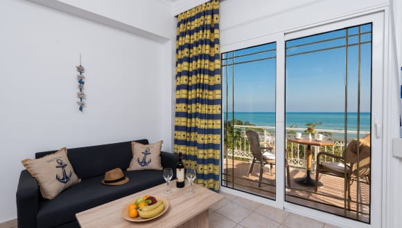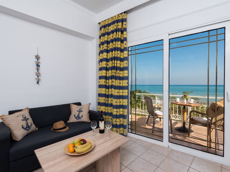 Unique ground floor and upper floor luxury apartments with a private terrace or balcony overlooking the beautiful Bay of Stegna. A fully equipped apartment that will surely make you feel like home either by and enjoying a meal on your private terrace or by taking it easy in your apartment. A non smoking policy is respected throughout the establishment indoors.