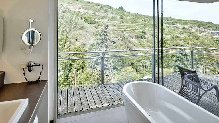 Im Steigenberger Hotel and Spa erwarten Sie 173 neu gestaltete Zimmer und Suiten auf höchstem Niveau. Die 17 luxuriösen Weinberg-Suiten begeistern mit Panoramablick und frei stehender Badewanne und die neuen 16 stylischen Goldberg-Suiten wurden erst kürzlich mit hochwertigen Materialen ausgestattet. Flachbild-TV, High-Speed Internetzugang sowie ein Telefon, Minibar, Föhn sind selbstverständlich. Viel Komfort bieten unsere Superior Doppelzimmer zur Weinberg- oder zur Stadtseite hin auf 25 m². Die Superior Plus Zimmer sind zusätzlich mit Balkon oder Terrasse ausgestattet. Zimmerausstattung: - Doppelbett - Badezimmer mit Dusche oder Badewanne, WC - Leihbadekorb mit flauschigem Bademantel - Flat-TV mit Radio, Kabel-TV - Safe - Schreibtisch - WLAN