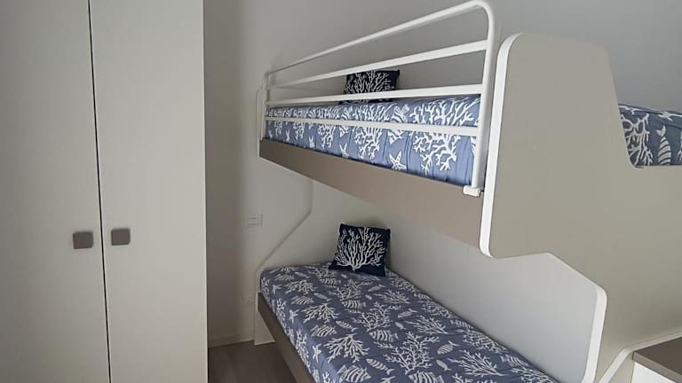 Die Ferienwohnung umfasst zwei Schlafzimmer, ein Wohnzimmer, eine voll ausgestattete Küche mit Kühlschrank und Kaffeemaschine sowie ein Badezimmer mit Bidet und Dusche. Handtücher und Bettwäsche werden bereitgestellt.