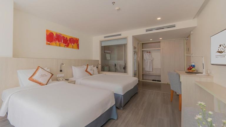 Das Stella Maris Nha Trang Hotel bietet eine komfortable Unterkunft in Nha Trang mit einem umfangreichen Wellnessangebot, einem eigenen Restaurant und einem Pool. Genießen Sie den Strand direkt vor der Tür und erkunden Sie die Umgebung mit dem Fahrrad. Das freundliche Personal und die kostenfreien Annehmlichkeiten machen Ihren Aufenthalt zu einem unvergesslichen Erlebnis.