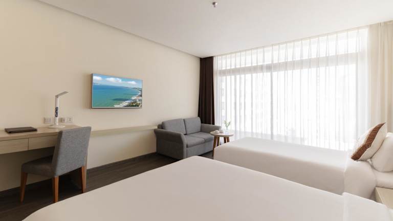 Die klimatisierten Zimmer im Stella Maris Nha Trang Hotel bieten Ihnen allen Komfort, den Sie für einen angenehmen Aufenthalt benötigen. Jedes Zimmer verfügt über einen Flachbild-Sat-TV, einen Sitzbereich mit einem Sofa und einen Schreibtisch. Wählen Sie zwischen Zimmern mit Blick auf das Meer, die Berge oder die Seen. Zur Ausstattung gehören auch ein Safe, ein Wasserkocher und eine Minibar. Im eigenen Bad finden Sie eine Badewanne oder eine Dusche, Bademäntel, Hausschuhe, einen Haartrockner und kostenfreie Pflegeprodukte.