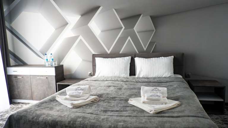 Das Hotel Stella befindet sich in Ternopil', einer charmanten Stadt in der Westukraine. In der Nähe finden Sie eine Vielzahl von Restaurants, Geschäften und Sehenswürdigkeiten. Der nächste Flughafen, der Flughafen Ivano-Frankivsk, ist etwa 133 km entfernt.