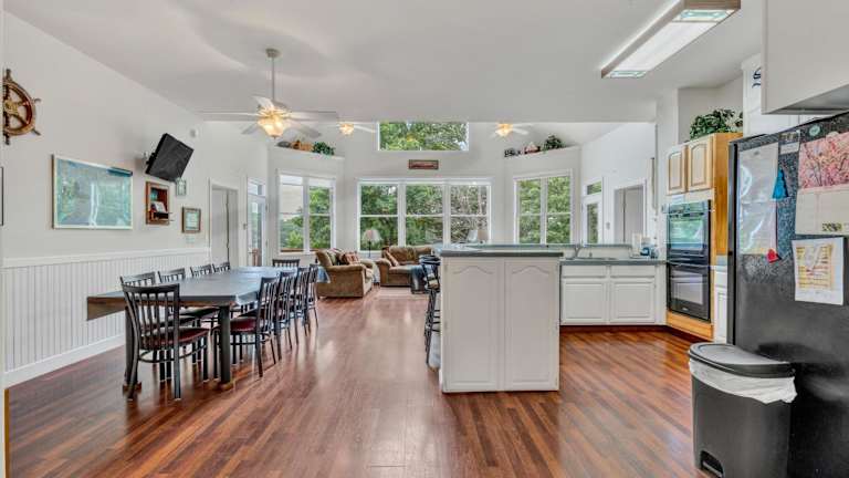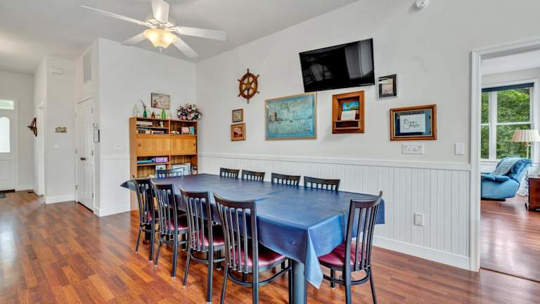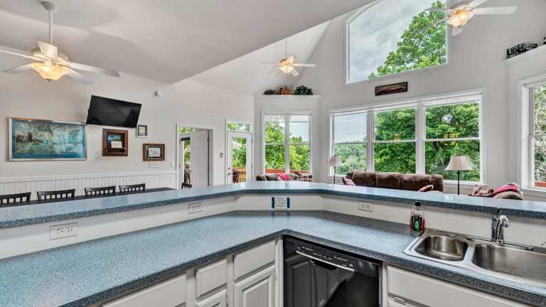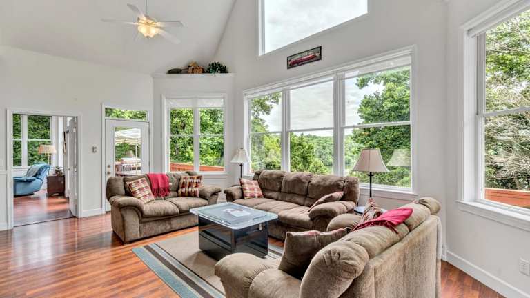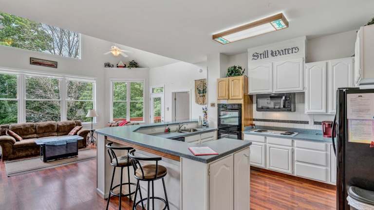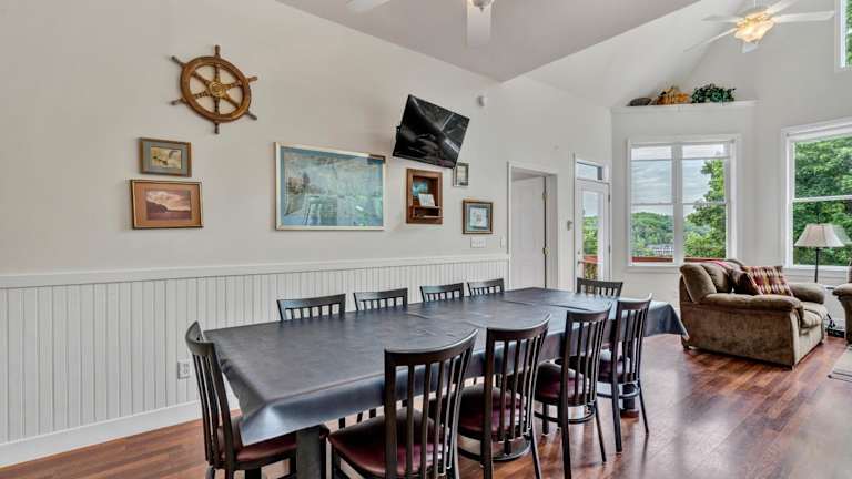 Das Ferienhaus Still Waters verfügt über 6 geräumige Schlafzimmer und 5 Badezimmer, die genügend Platz für große Gruppen oder Familien bieten. Die Zimmer sind komfortabel eingerichtet und mit Bettwäsche und Handtüchern ausgestattet. Das Ferienhaus bietet auch einen Essbereich, in dem Sie gemeinsame Mahlzeiten einnehmen können. Die voll ausgestattete Küche ermöglicht es Ihnen, Ihre eigenen Mahlzeiten zuzubereiten und den Komfort eines eigenen Zuhauses zu genießen. Von der Terrasse aus können Sie den Blick auf den See genießen und die Ruhe der Umgebung erleben.