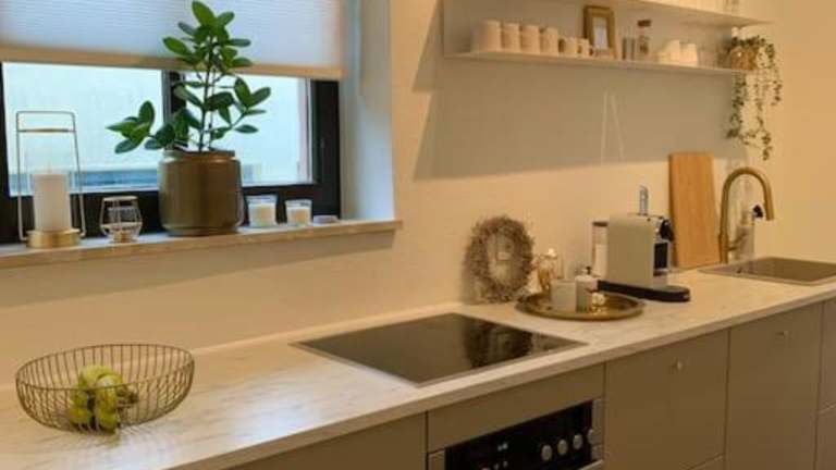 Die Ferienwohnung verfügt über ein Schlafzimmer, eine voll ausgestattete Küche mit Kühlschrank und Geschirrspüler, einen Flachbild-TV, einen Sitzbereich sowie ein Badezimmer mit Dusche. Handtücher und Bettwäsche werden bereitgestellt.