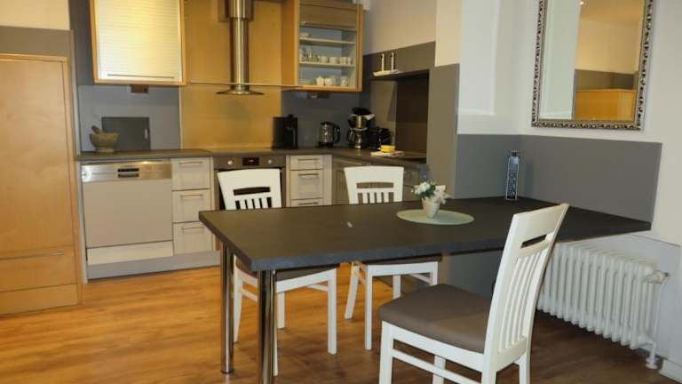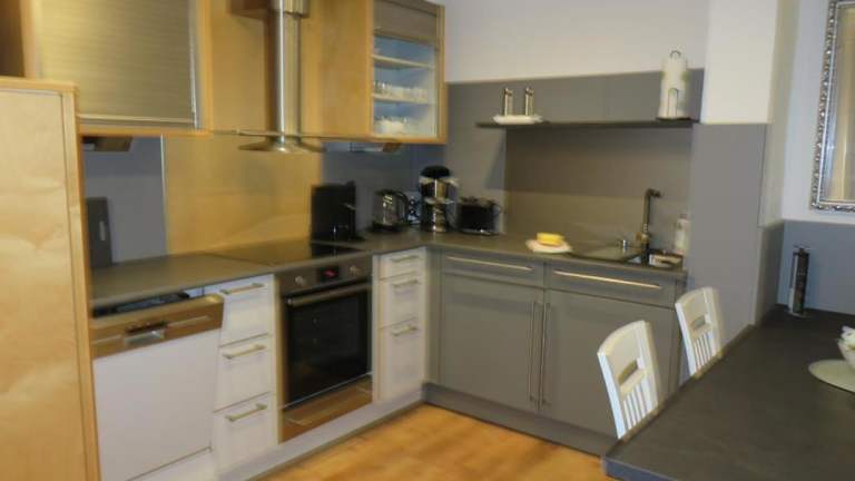 Die Ferienwohnung umfasst ein Schlafzimmer und ein Wohnzimmer, welches mit einem TV mit Kabelkanälen ausgestattet ist. Die voll ausgestattete Küche beinhaltet einen Kühlschrank und einen Geschirrspüler. Das Badezimmer ist mit einer Dusche ausgestattet, und sowohl Handtücher als auch Bettwäsche werden bereitgestellt.