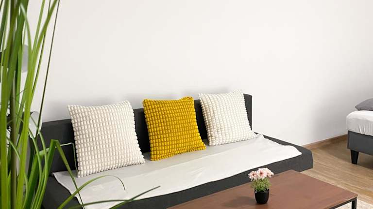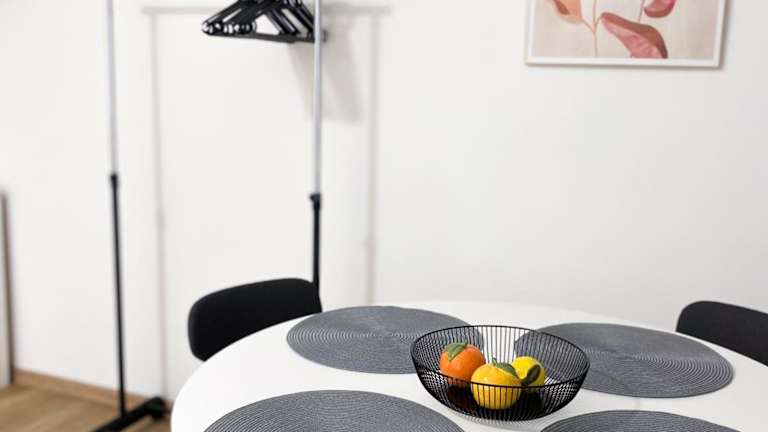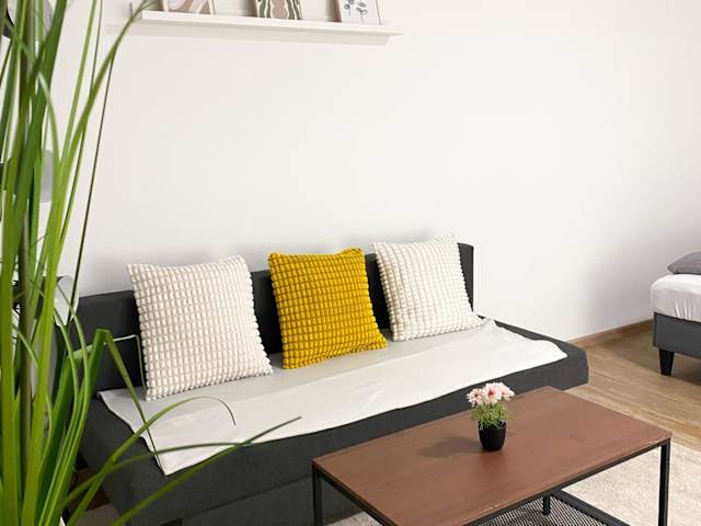Die Ferienwohnung ist ausgestattet mit einem Schlafzimmer, einer Küche, die mit einem Kühlschrank und einem Ofen versehen ist, einem Flachbild-TV sowie einem Sitzbereich. Des Weiteren gibt es ein Badezimmer, das mit einer Dusche ausgestattet ist. Handtücher und Bettwäsche werden bereitgestellt.