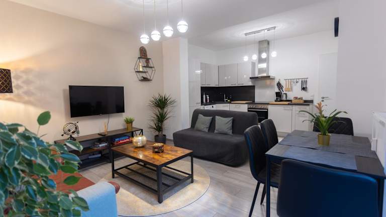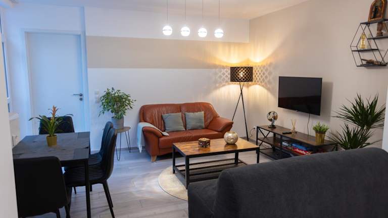 Die stilvolle Wohnung wurde im Jahr 2020 erbaut und bietet eine moderne Ausstattung. Der Check-in ist ab 15:00 Uhr bis 23:00 Uhr möglich, während der Check-out bis 11:00 Uhr erfolgt. Die Ferienwohnung wird von einem privaten Gastgeber betrieben, der keine Feiern oder ähnliche Veranstaltungen gestattet. Das Mindestalter für den Check-in beträgt 18 Jahre.