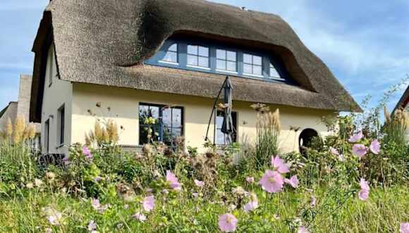 Die Unterkunft bietet Übernachtungen in einem stilvollen Reetdachhaus und verfügt über eine Sauna sowie einen Garten. Es stehen kostenlose Privatparkplätze zur Verfügung. Das Haus ist für Gäste mit einem Mindestalter von 18 Jahren zugänglich und Haustiere sind erlaubt, wobei eventuell Gebühren anfallen können.