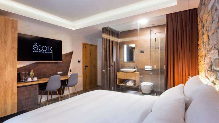 Die Unterkunft Štok - Rooms, Wine & Restaurant - Marezige, Koper bietet komfortable Wohneinheiten mit kostenlosem WLAN und Klimaanlage. Zu den gemeinsamen Einrichtungen zählen ein Garten und eine Terrasse.